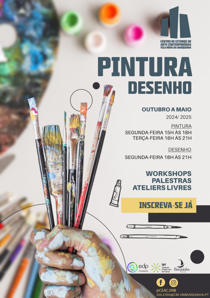 Estão abertas inscrições para os ateliers de pintura, desenho, cerâmica, fotografia e vídeo do Centro de Estudos de Arte Contemporânea, em Vila Nova da Barquinha. As aulas iniciam-se em outubro e prolongam-se até maio de 2025, dando continuidade à parceria da Câmara Municipal com o Instituto Politécnico de Tomar (IPT) e Fundação EDP.