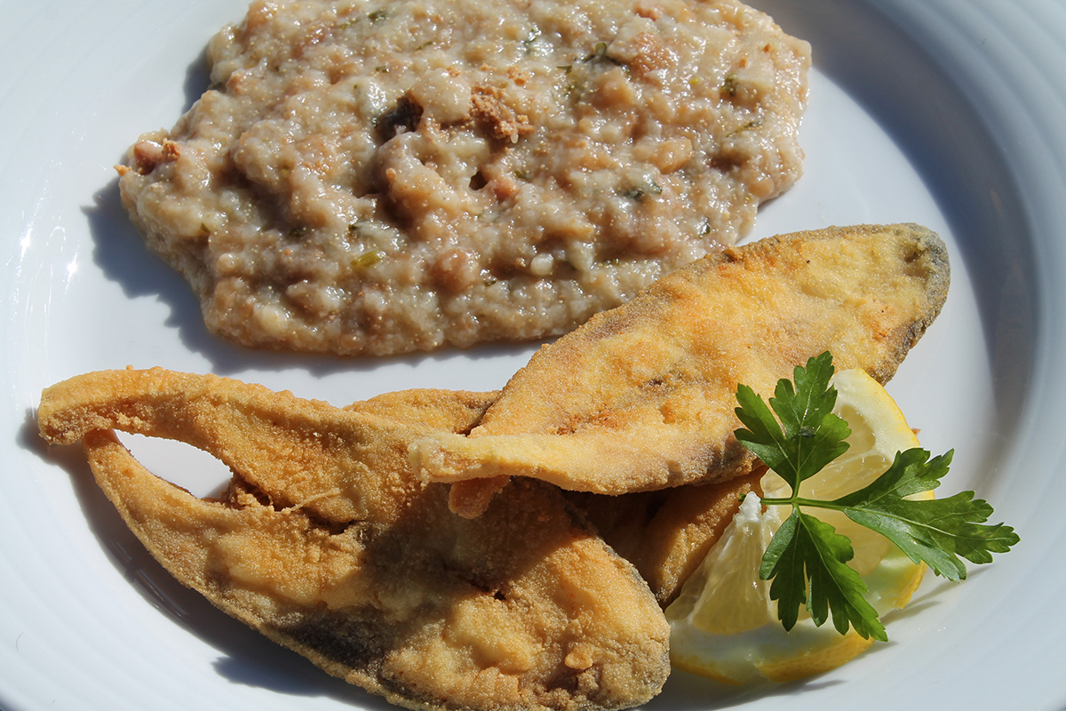 Pratos: açorda de ovas com sável frito, lampreia à bordalesa